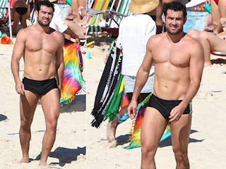 Sem Nívea Stelmann, ator curte o sol nas areias do Leblon, no Rio
